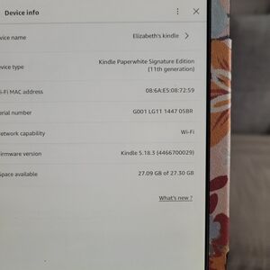 Enjoy reading on this Kindle with a stylish floral cover. Perfect for book lovers on the go.