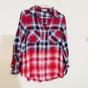 Skies Are Blue Plaid Button Down Shirt Size XS Red/Blue Soft Lightweight