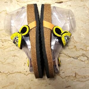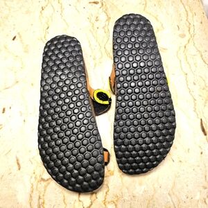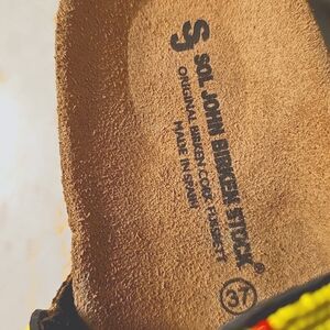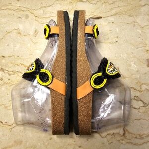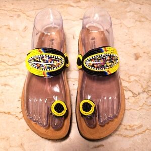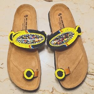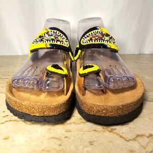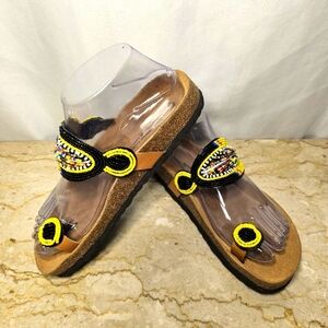 Sol John Birkenstock | Womens yellow, black, multi-colored Beaded Leather Toe Ring Boho Sandals | Excellent/Nearly New Pre-owned condition | Size 37 (6 - 6.5)