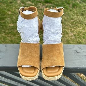 MARC FISHER Suede Platform Straw Wedge Sandals