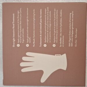 - Paume organic cotton overnight gloves for hand treatments (new in box, box is not sealed but purchased this way).