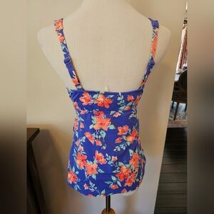 Lands’ End Women's Size 4 Swim Tank Blue Floral Tankini Swim Top Adjustable