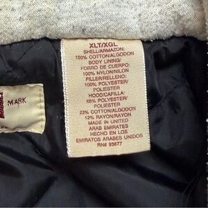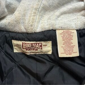 Details: Quilted insulated lining for warmth, metal front zipper, inner zipper on sweatshirt insert, two button-flap chest pockets, side hand pockets, button cuffs, Big Mac logo labels at chest pocket and inner neck, hood drawcord, casual outdoor and workwear design.
