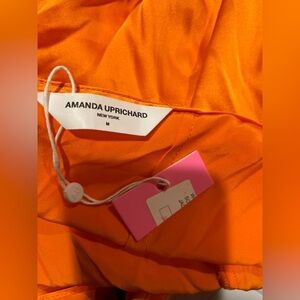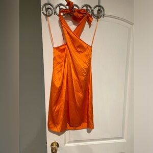 New! Revolve x Amanda Uprichard Silk Jade Halter Mini Dress Fire Orange❤️🔥M NWT