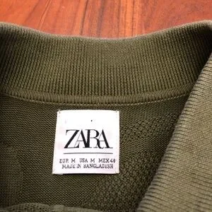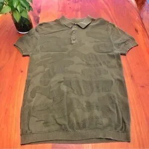 ZARA Men’s Olive Green Polo Short Sleeves Textured Knit T Shirt Size Medium.