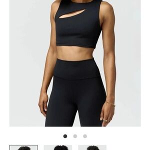 New with tags. Spiritual Gangster double-layer sports bra featuring a sleek front slit and an open back cutout for a modern, sculptural look. Designed for moderate support with a smooth, compressive feel. Ideal for yoga, studio workouts, or elevated athleisure styling.