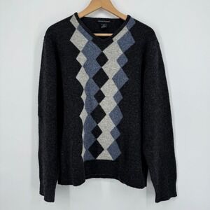 Eastside Westside Mens V Neck Argyle Sweater Lambswool Medium Dark Gray Blue