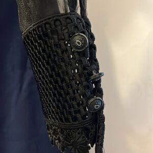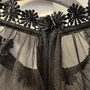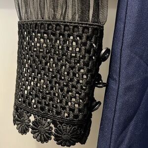 Matilda Navy Blue Dress w/Black shear & embroidered top & long Sleeves Size M