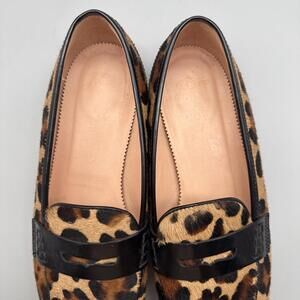 J.Crew Academy Penny Loafers Women’s 9 Leopard Print Calf Hair Preppy Chic Corp