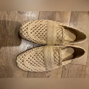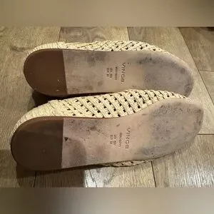 Chic woven flats by Vince. Beige design for versatile wear. Comfortable and stylish.