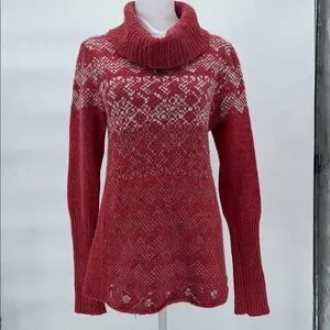 Free People Red Fair Isle Cowl Neck Sweater Women’s M Wool Blend Winter
