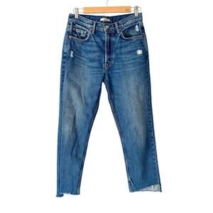 Grlfrnd Helena Crop Button Fly Jeans Raw Hem size 28 Designer High Rise