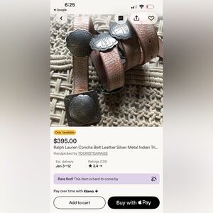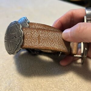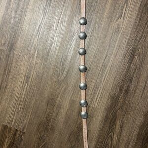 Like new Ralph Lauren concho belt - whitewashed with silver colored accents/ size xs but fits a large natural waist. I’m guessing it was designed to wear low on the hips. Beautiful belt! See pic for measurements.