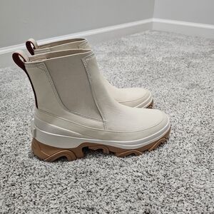 Sorel Brex Leather Chelsea Boots. Womens size 9.5. New without tags. Never worn outside. This modern Chelsea boot boasts a waterproof leather upper and a bold, chunky, high-traction heel and platform sole made to take on the demands of city living.
