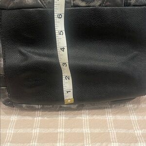 Stylish shoulder bag with vibrant red interior. Black with animal accents. Perfect for everyday use. Has signs of wear on handles and other areas as shown in pics. See pics for measurements. LARGER BAG # 1234
