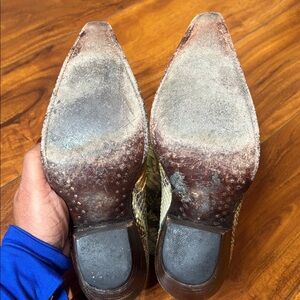 I had these hand dyed python cowboy boots custom made by Old Gringo for BOOT STAR a few years back for a fundraiser. I’m only selling them because they are marked a size 8 but I wear an 8.5 and need 2 pair of socks to wear them.