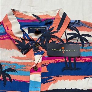 Margaritaville Tropical Beach & Palm Tree Button-Down Hawaiian Shirt XXL NWT