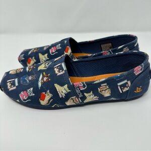 Skechers BOBS for Cats Blue Slip-On Shoes women’s 8.5. Cats with glasses, books