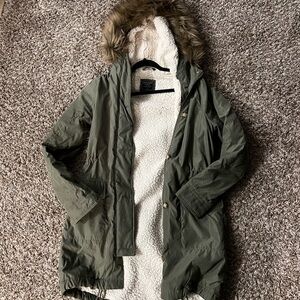 Warm jacket featuring a plush faux fur trim. Ideal for cold weather.