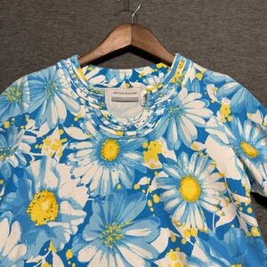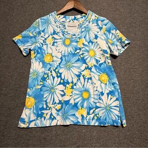 Alfred Dunner Floral Blue Top & Yellow Capri Pants Set Shirt PS & Capri Size 8