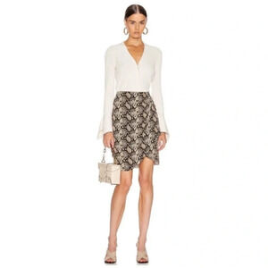 Nili Lotan Hazel Snake Print Silk Mini Skirt Faux Wrap Banded Waist Khaki NEW 6