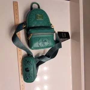Bambi Loungefly X Disney Green Quilted Pattern Crossbody Sling Matching Coin Bag