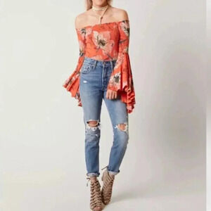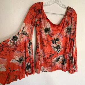 We The Free Printed Birds Of Paradise Top Mulitcolour Flared Sleeves L