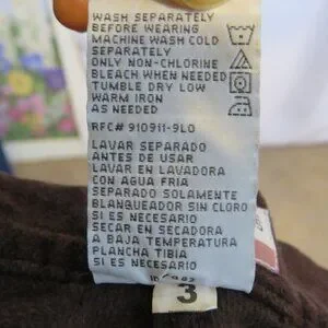 Care Instructions: Wash separately before wearing. Machine wash cold, separately. Only non-chlorine bleach when needed. Tumble dry low. Warm iron as needed.