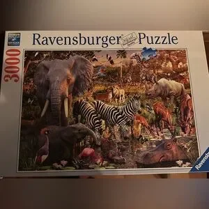 Immerse in nature with elephants, zebras, and more. Ideal for puzzle enthusiasts. Done once, all pieces present.