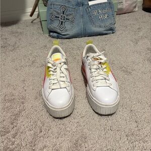Puma White Sneakers with Yellow and Pink Highlights