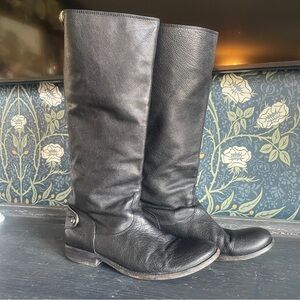 FRYE Melissa Button Back Black Leather Riding Boots