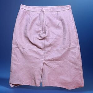 The skirt comes in a stunning pink hue that adds a pop of color to any ensemble. It's crafted from high-quality leather and features a smooth, lined interior for added comfort. Whether paired with a silk blouse or a casual tee, this skirt is sure to make a statement.