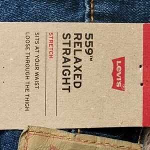 Brand New still with tags Levi's 559 Relaxed Straight legged blue jeans. These jeans are Relaxed Straight legged with stretch material. I have 2 pairs of these jeans different sizes one is 36x32 and the other is 32x30 fitting true to size.