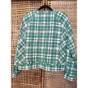 Cabi Library Women's MJacket Green White Black Plaid Tweed Blazer fringe hem