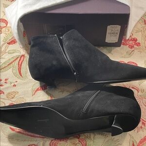 Practically brand new and hardly worn. Beautiful Bootie. Everything comes with them. Chic black booties with a modern silhouette. Ideal for versatile styling.
