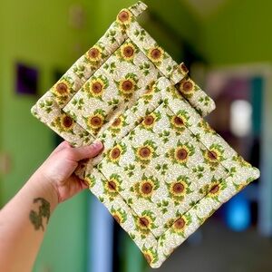 VTG Sunflower Kitchen Pot Holders Hanging Set of 2 Cottagecore Farmhouse Accent
