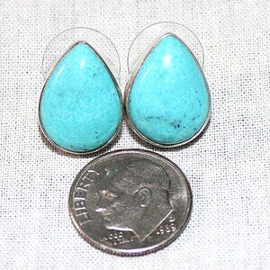 Vintage Sterling Silver Tear Drop Turquoise Stud Earrings