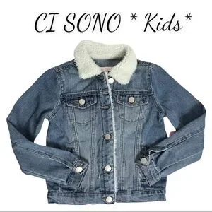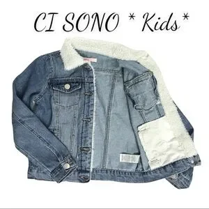 NWT CI SONO * Kids* Medium Wash Distressed Denim & Faux Fur Jacket