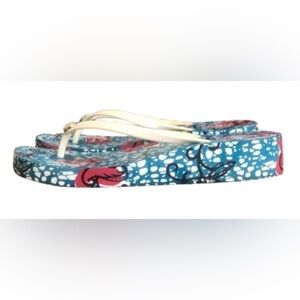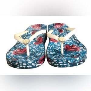 Tory Burch blu & burg floral 1.5” platform flip flops w cream straps SZ 10.5