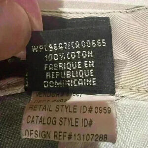Eddie Bauer distressed twill shorts. Front has two tucks and side slit pockets. The back has button down welt pockets. REF#M861