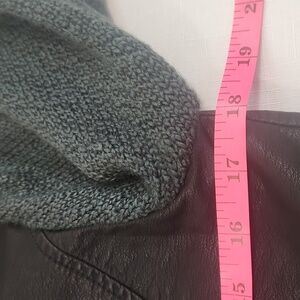 Moto Asymmetrical style black and green faux leather jacket from Daytrip Buckle. Sleeves are sweater. Hood is removable. Size M