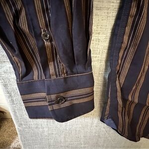 This Joseph Abboud shirt features a striking design with alternating black and brown vertical stripes, perfect for making a bold fashion statement. Crafted for casual wear, it offers a comfortable fit and a touch of elegance, suitable for various occasions.