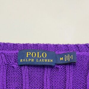 Polo Ralph Lauren Purple Cable Knit VNeck Sweater Women Medium Preppy Academia