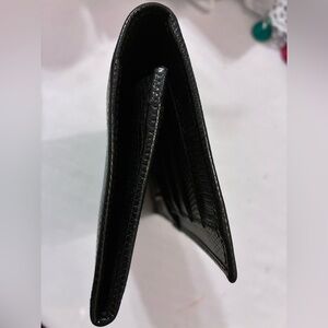 Timeless and elegant, this Salvatore Ferragamo Vara Continental Wallet showcases the brand’s iconic sophistication. Crafted in Italy from textured black leather, it features the signature Vara grosgrain bow detail accented with a gold-tone Ferragamo logo plate, a classic design that never goes out of style.