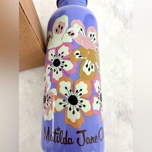 25 oz. Stainless Steel with pink plastic lid. Hand wash.