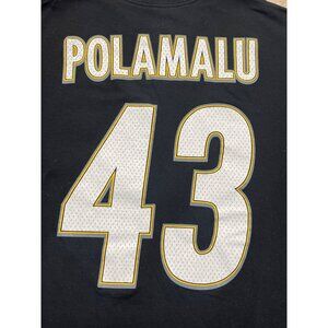 Majestic Pittsburgh Steelers Troy Polamalu 43 Black Crewneck T-Shirt Men's XL