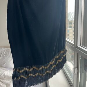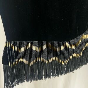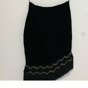 Vintage Frissons Paris velvet fringe & beaded Black Women's Skirt