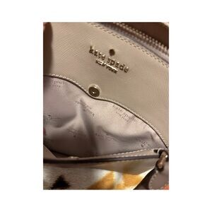 Kate Spade taupe shoulder bag. Features top zip closure and side pockets. Ideal for daily use and special occasions. Does not have attached outer hanging tag.