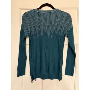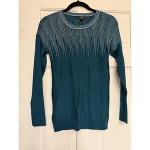 Alfani women's Sweater teal motif blue.Pullover. Metallic.Sz XS