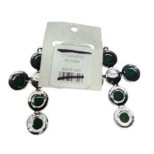 Free People Time Is On My Side Cross Earrings Green Silver NWOT